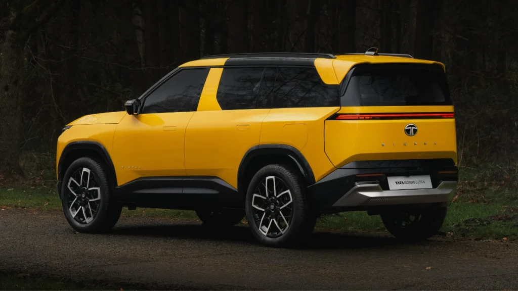 Blending Retro and Modern: The new Sierra retains its unmistakable identity with a bold, boxy silhouette. A nod to the original is the reimagined signature Alpine window design at the rear, now cleverly integrated with a blacked-out B-pillar and roof to give a floating-roof effect. Up front, it sports a connected LED light bar and vertically stacked headlamps, aligning with Tata’s contemporary design language.